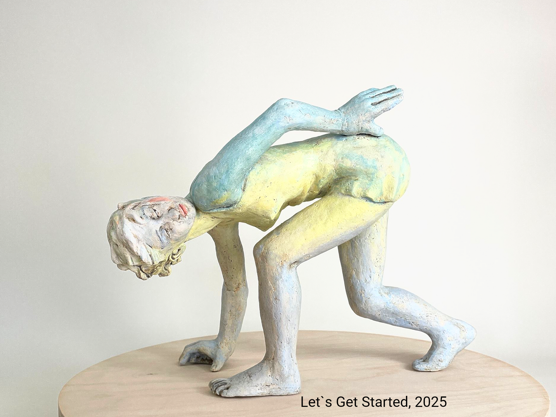 Der Prozess in meinem Atelier ist eine Reise, die von Zeichnungen, Notizen und inneren Bildern geprägt ist. Ich arbeite daran, stimmungsvolle Charaktere in spezifischen Haltungen und Bewegungen zu entwickeln, die eine innere Spannung transportieren.
